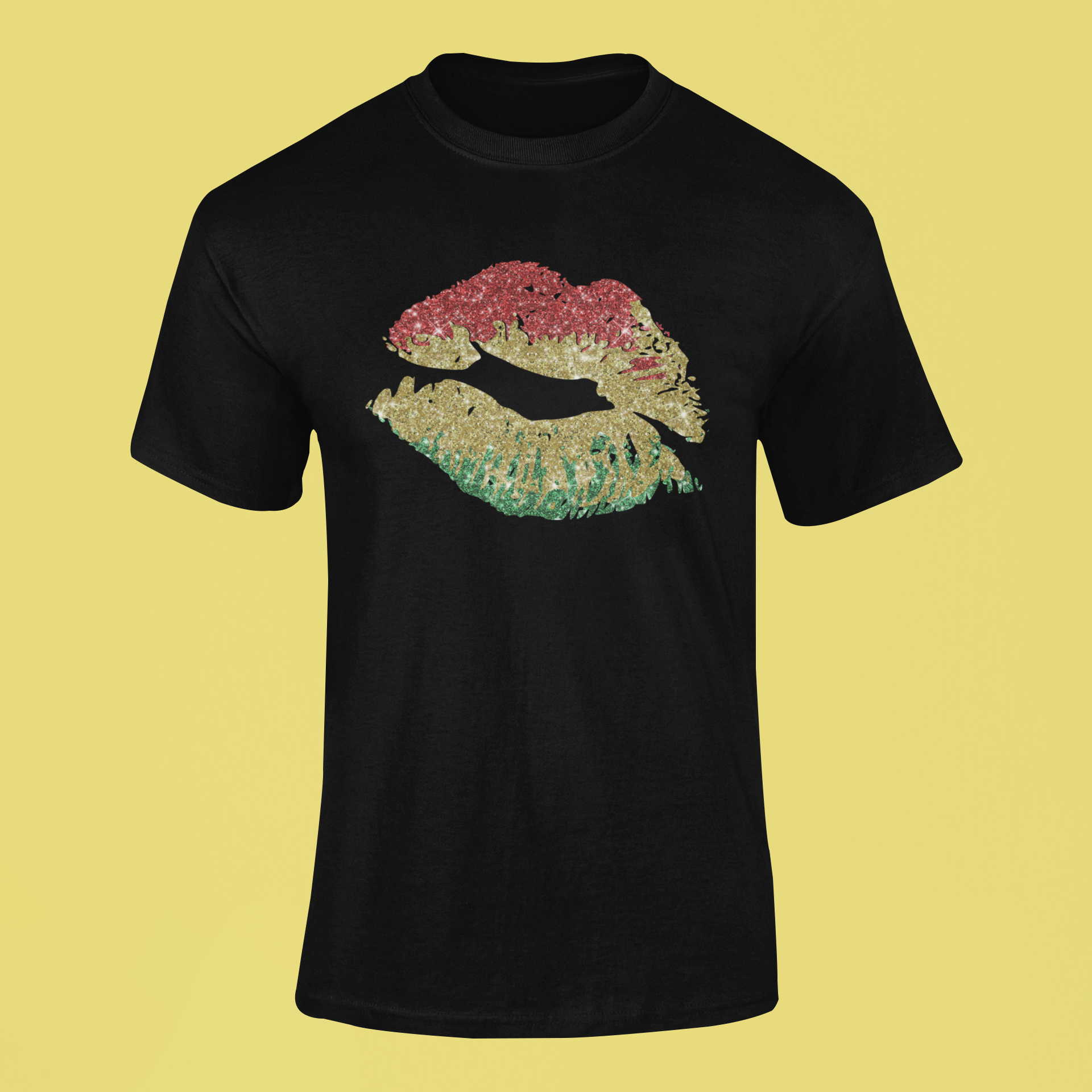 Glitter lips on 100% cotton or 50/50 cotton/polyester blend